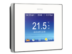 The Terra has a simpler, more contemporary design than the “iE” series of Warmup Thermostats. Notable details include: